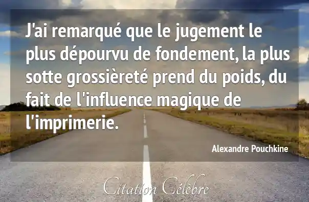 J'ai remarqué que le jugement le plus dépourvu de fondement, la plus sotte grossièreté prend du poids, du fait de l'influence magique de l'imprimerie.