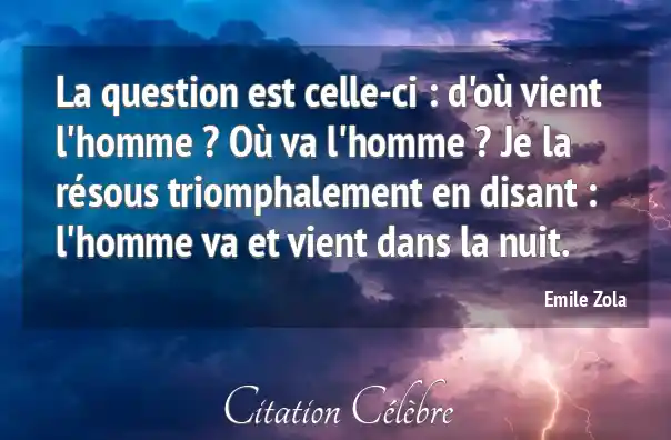 La question est celle-ci : d'où vient l'homme ? Où va l'homme ? Je la résous triomphalement en disant : l'homme va et vient dans la nuit.