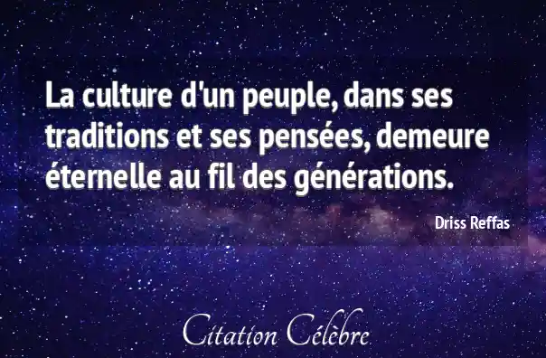 La culture d'un peuple, dans ses traditions et ses pensées, demeure éternelle au fil des générations.