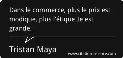 Dans le commerce, plus le prix est modique, plus l'étiquette est grande.