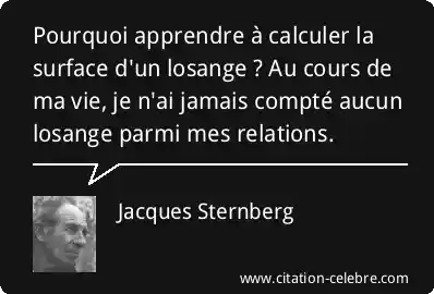 Pourquoi apprendre à calculer la surface d'un losange ? Au cours de ma vie, je n'ai jamais compté aucun losange parmi mes relations.