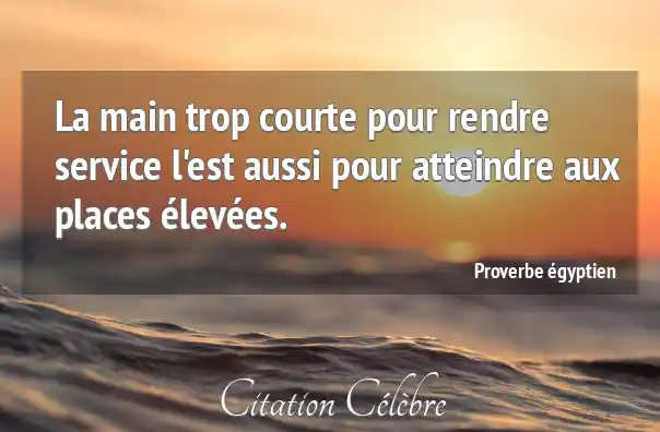 Proverbe  égyptien Rendre : La main trop courte pour rendre service l'est aussi pour...