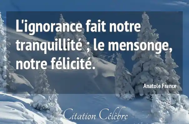 L'ignorance fait notre tranquillité ; le mensonge, notre félicité.