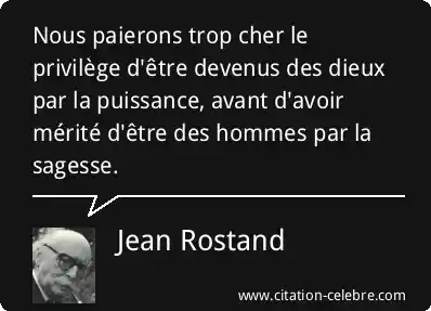 Nous paierons trop cher le privilège d'être devenus des dieux par la puissance, avant d'avoir mérité d'être des hommes par la sagesse.