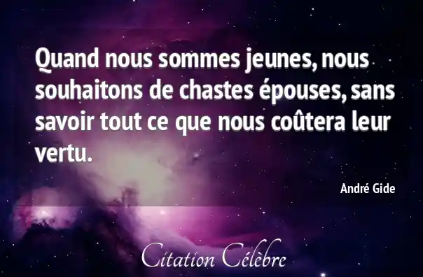 Quand nous sommes jeunes, nous souhaitons de chastes épouses, sans savoir tout ce que nous coûtera leur vertu.