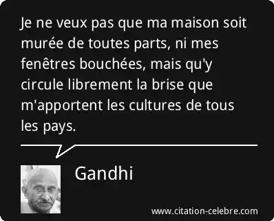 Je ne veux pas que ma maison soit murée de toutes parts, ni mes fenêtres bouchées, mais qu'y circule librement la brise que m'apportent les cultures de tous les pays.