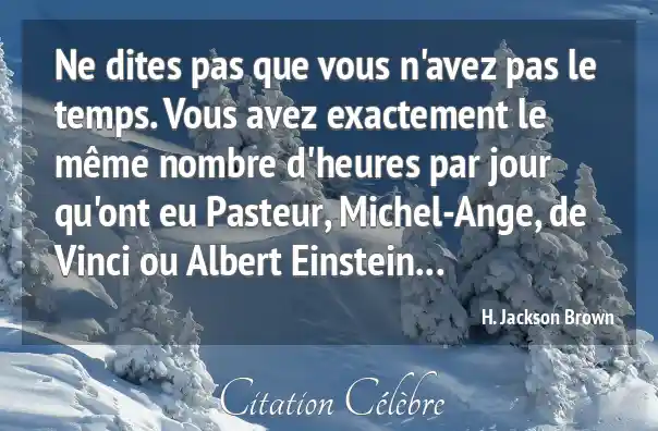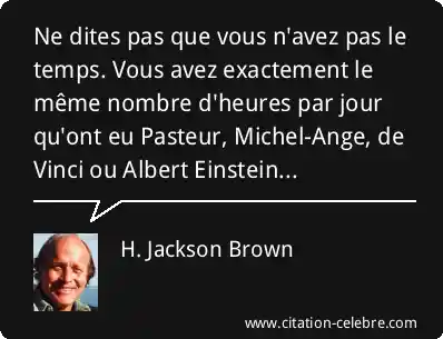 Ne dites pas que vous n'avez pas le temps. Vous avez exactement le même nombre d'heures par jour qu'ont eu Pasteur, Michel-Ange, de Vinci ou Albert Einstein...