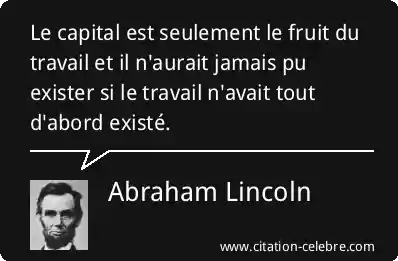 Le capital est seulement le fruit du travail et il n'aurait jamais pu exister si le travail n'avait tout d'abord existé.