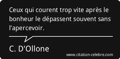 Ceux qui courent trop vite après le bonheur le dépassent souvent sans l'apercevoir.