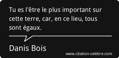 Tu es l'être le plus important sur cette terre, car, en ce lieu, tous sont égaux.