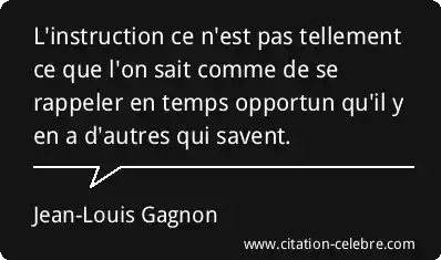 L'instruction ce n'est pas tellement ce que l'on sait comme de se rappeler en temps opportun qu'il y en a d'autres qui savent.