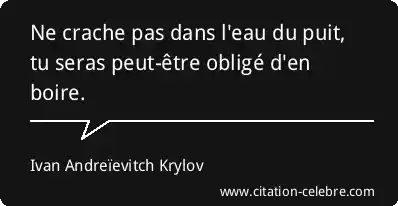 Ne crache pas dans l'eau du puit, tu seras peut-être obligé d'en boire.