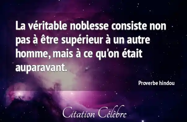La véritable noblesse consiste non pas à être supérieur à un autre homme, mais à ce qu'on était auparavant.