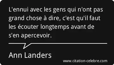 L'ennui avec les gens qui n'ont pas grand chose à dire, c'est qu'il faut les écouter longtemps avant de s'en apercevoir.