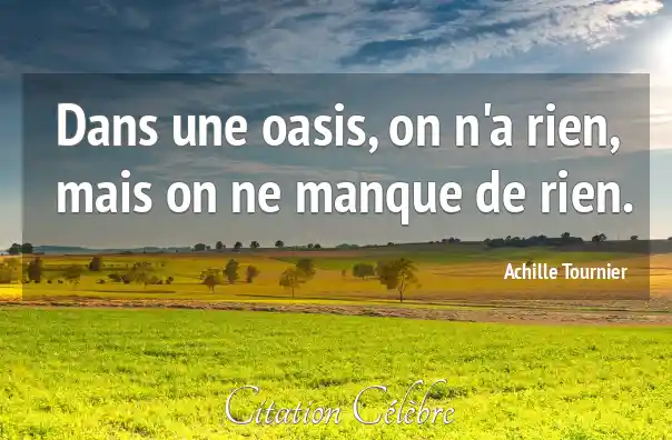 Dans une oasis, on n'a rien, mais on ne manque de rien.