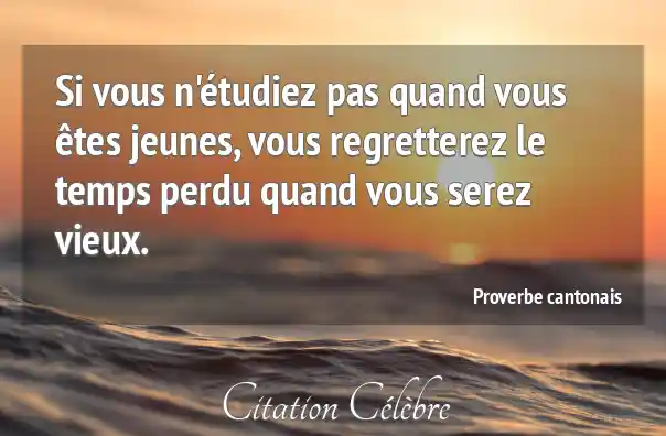 Si vous n'étudiez pas quand vous êtes jeunes, vous regretterez le temps perdu quand vous serez vieux.