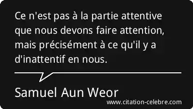 Ce n'est pas à la partie attentive que nous devons faire attention, mais précisément à ce qu'il y a d'inattentif en nous.