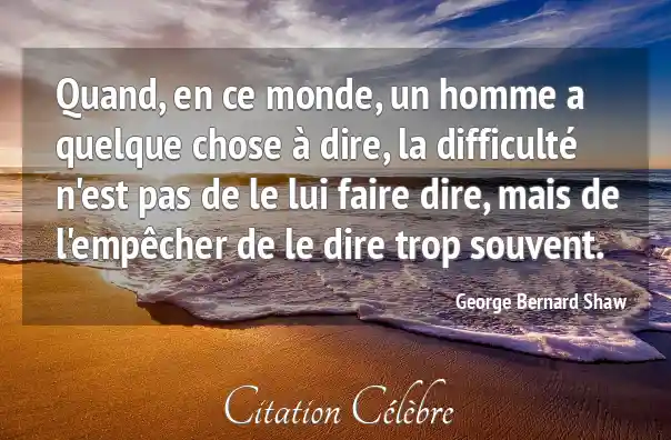Quand, en ce monde, un homme a quelque chose à dire, la difficulté n'est pas de le lui faire dire, mais de l'empêcher de le dire trop souvent.