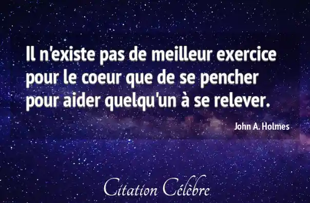 Il n'existe pas de meilleur exercice pour le coeur que de se pencher pour aider quelqu'un à se relever.