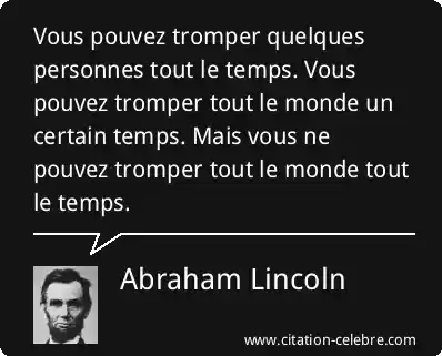 Vous pouvez tromper quelques personnes tout le temps. Vous pouvez tromper tout le monde un certain temps. Mais vous ne pouvez tromper tout le monde tout le temps.