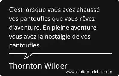 C'est lorsque vous avez chaussé vos pantoufles que vous rêvez d'aventure. En pleine aventure, vous avez la nostalgie de vos pantoufles.
