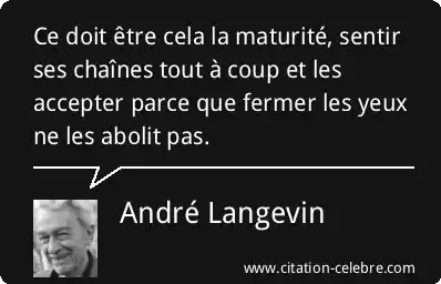 Ce doit être cela la maturité, sentir ses chaînes tout à coup et les accepter parce que fermer les yeux ne les abolit pas.