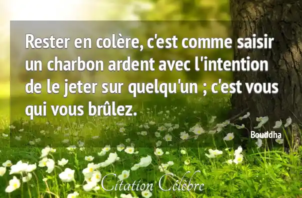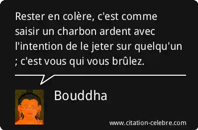 Rester en colère, c'est comme saisir un charbon ardent avec l'intention de le jeter sur quelqu'un ; c'est vous qui vous brûlez.