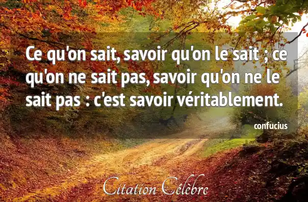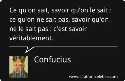 Ce qu'on sait, savoir qu'on le sait ; ce qu'on ne sait pas, savoir qu'on ne le sait pas : c'est savoir véritablement.