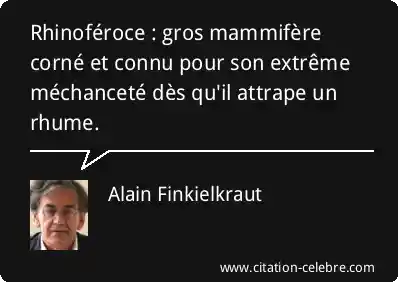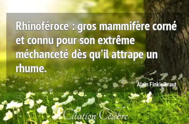 Rhinoféroce : gros mammifère corné et connu pour son extrême méchanceté dès qu'il attrape un rhume.