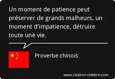 Un moment de patience peut préserver de grands malheurs, un moment d'impatience, détruire toute une vie.