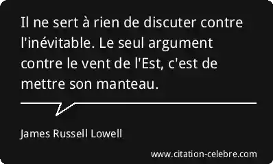 Il ne sert à rien de discuter contre l'inévitable. Le seul argument contre le vent de l'Est, c'est de mettre son manteau.