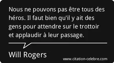 Nous ne pouvons pas être tous des héros. Il faut bien qu'il y ait des gens pour attendre sur le trottoir et applaudir à leur passage.