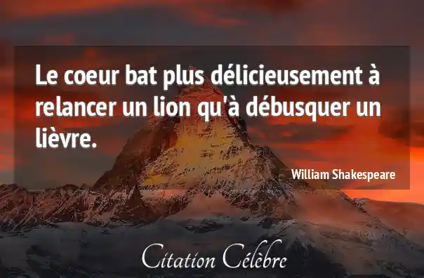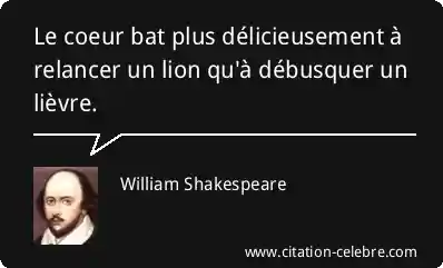 Le coeur bat plus délicieusement à relancer un lion qu'à débusquer un lièvre.