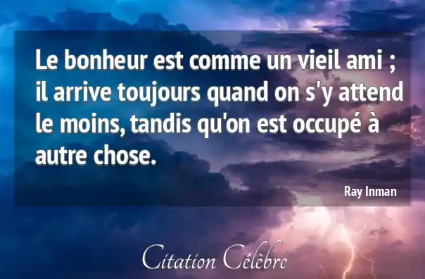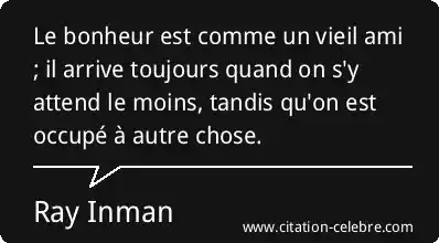Le bonheur est comme un vieil ami ; il arrive toujours quand on s'y attend le moins, tandis qu'on est occupé à autre chose.