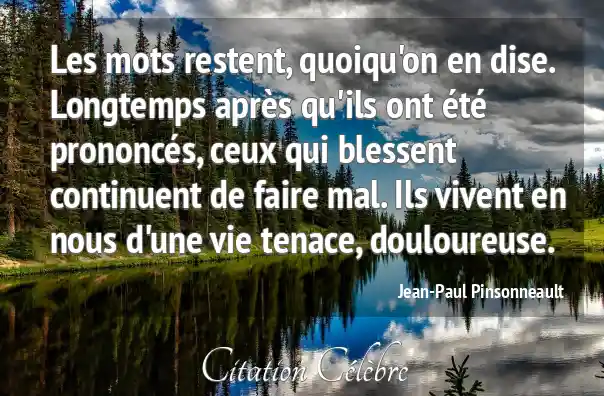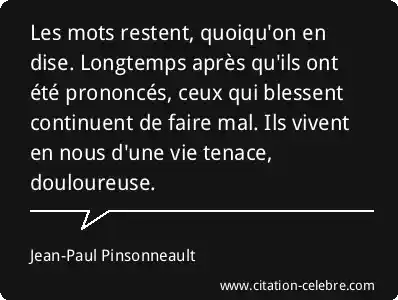 Les mots restent, quoiqu'on en dise. Longtemps après qu'ils ont été prononcés, ceux qui blessent continuent de faire mal. Ils vivent en nous d'une vie tenace, douloureuse.