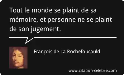 Tout le monde se plaint de sa mémoire, et personne ne se plaint de son jugement.