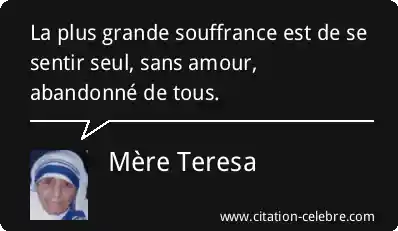 La plus grande souffrance est de se sentir seul, sans amour, abandonné de tous.