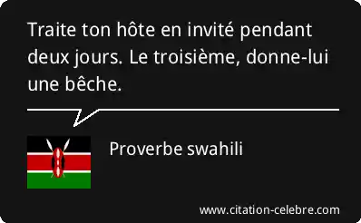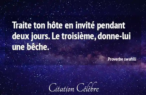 Traite ton hôte en invité pendant deux jours. Le troisième, donne-lui une bêche.