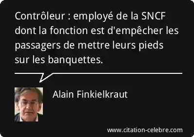 Contrôleur : employé de la SNCF dont la fonction est d'empêcher les passagers de mettre leurs pieds sur les banquettes.