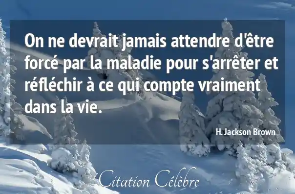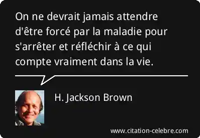 On ne devrait jamais attendre d'être forcé par la maladie pour s'arrêter et réfléchir à ce qui compte vraiment dans la vie.