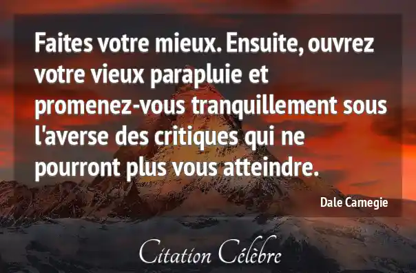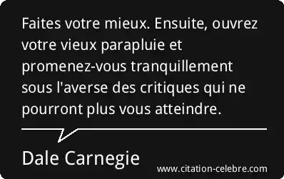 Faites votre mieux. Ensuite, ouvrez votre vieux parapluie et promenez-vous tranquillement sous l'averse des critiques qui ne pourront plus vous atteindre.