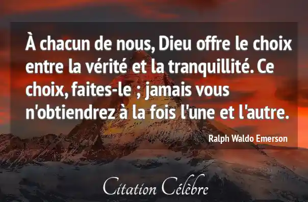 À chacun de nous, Dieu offre le choix entre la vérité et la tranquillité. Ce choix, faites-le ; jamais vous n'obtiendrez à la fois l'une et l'autre.
