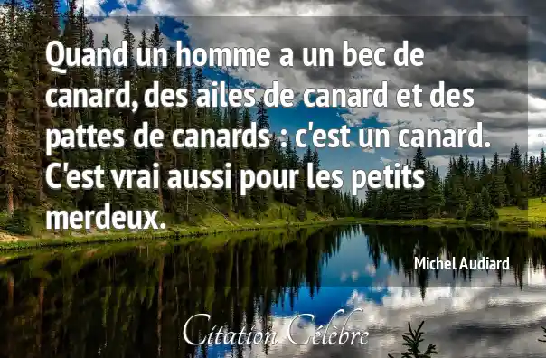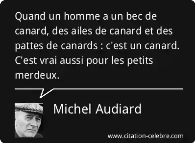 Quand un homme a un bec de canard, des ailes de canard et des pattes de canards : c'est un canard. C'est vrai aussi pour les petits merdeux.
