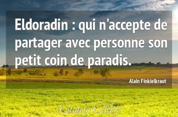 Eldoradin : qui n'accepte de partager avec personne son petit coin de paradis.