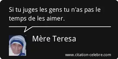 Si tu juges les gens tu n'as pas le temps de les aimer.