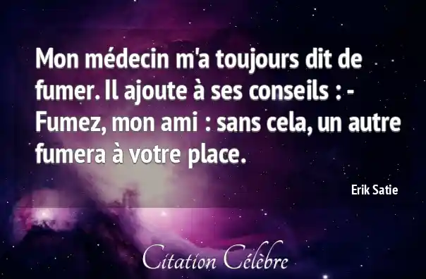 Mon médecin m'a toujours dit de fumer. Il ajoute à ses conseils : - Fumez, mon ami : sans cela, un autre fumera à votre place.