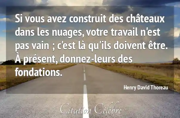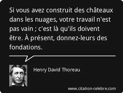 Si vous avez construit des châteaux dans les nuages, votre travail n'est pas vain ; c'est là qu'ils doivent être. À présent, donnez-leurs des fondations.