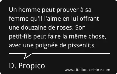 Un homme peut prouver à sa femme qu'il l'aime en lui offrant une douzaine de roses. Son petit-fils peut faire la même chose, avec une poignée de pissenlits.