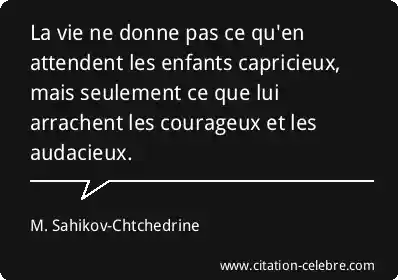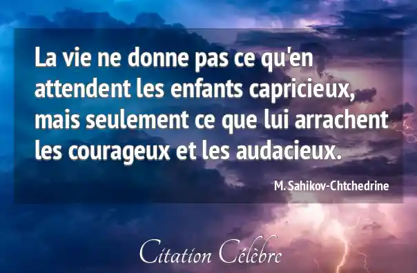 La vie ne donne pas ce qu'en attendent les enfants capricieux, mais seulement ce que lui arrachent les courageux et les audacieux.