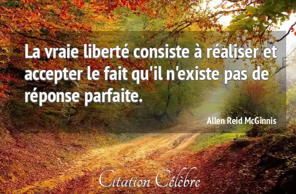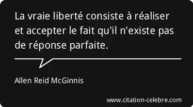 La vraie liberté consiste à réaliser et accepter le fait qu'il n'existe pas de réponse parfaite.